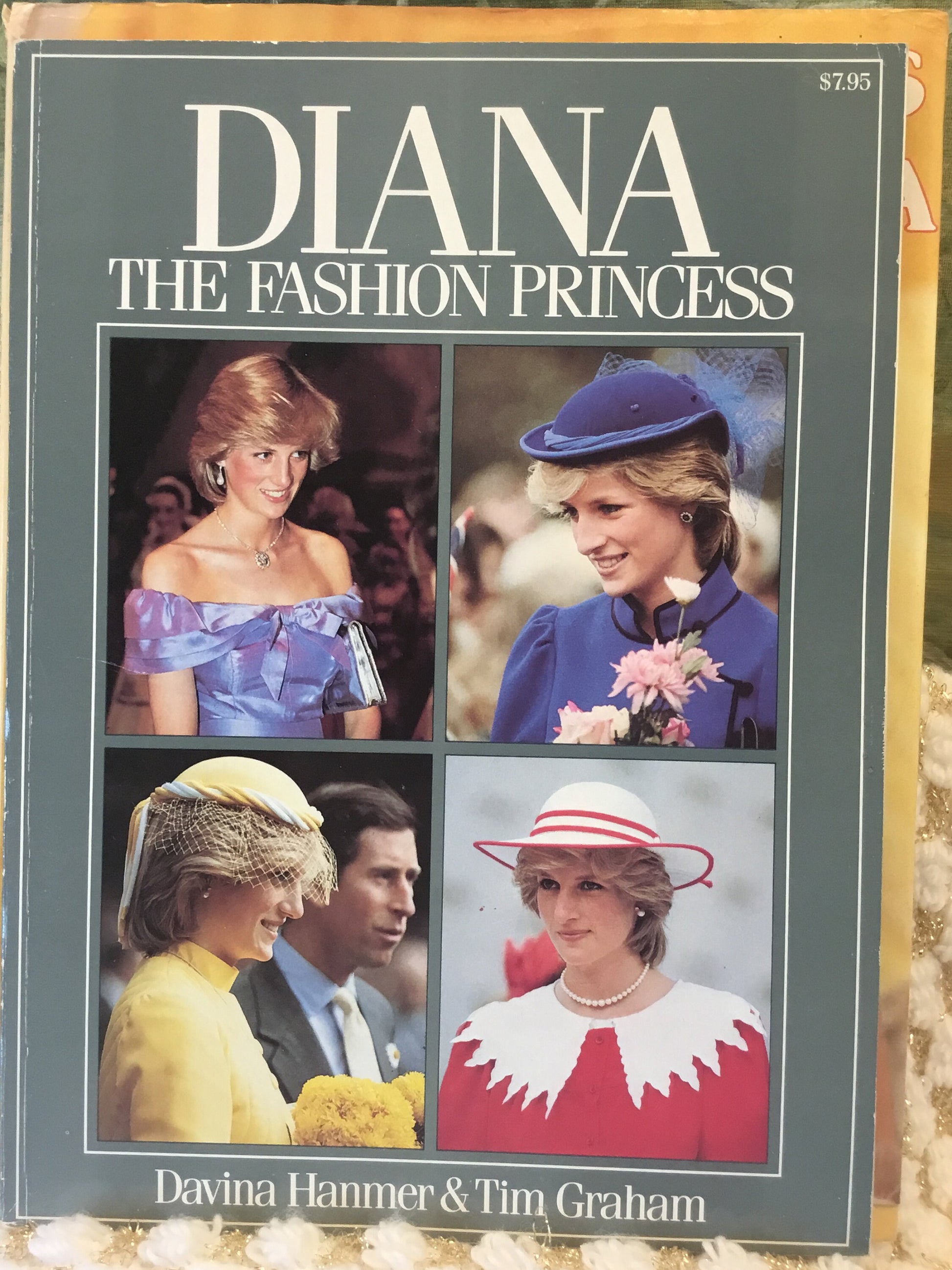 ** Diana The Fashion Princess, GREEN soft cover, by Davina Hammer, photos by Tim Graham, published by B. Mitchell, first Canadian edition. Fill with content and full colour photos organized in categories that include: Today, Early Life, Engagement, Wedding Day, Honeymoon, Public Life, Royal Tours, Off Duty, Evening Wear and Jewellery. Book is in good condition, no torn pages, no writing on any pages, firm binding, all pages attached.