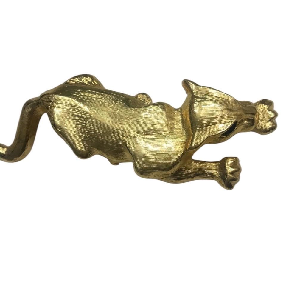 Fancy & Unusual Vintage 1970s leopard brooch with Green rhinestone eyes