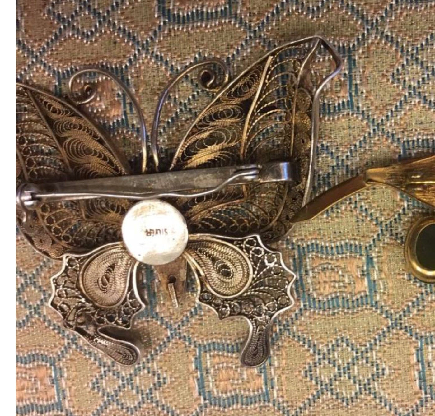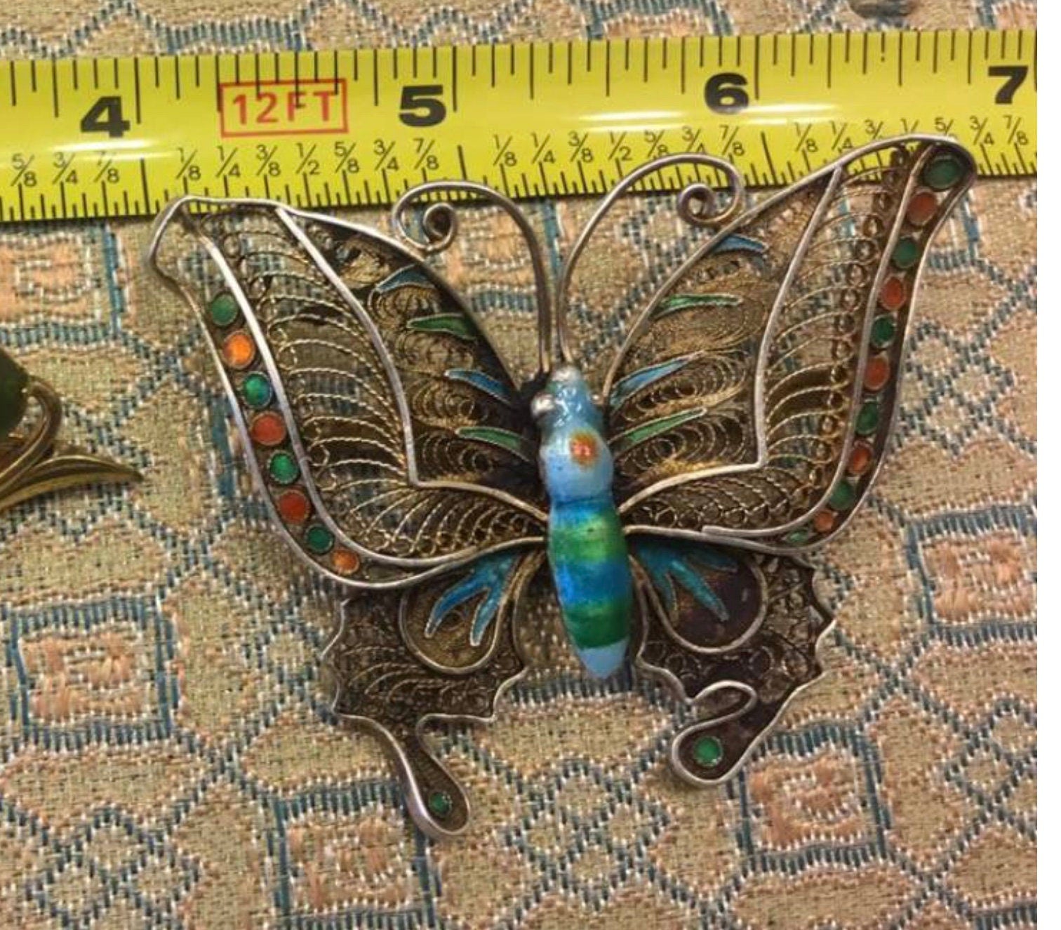 Huge Early 1900's Silver Filigree Enamel Butterfly Brooch Antique Oriental Jewelry, Chinese Export to France
