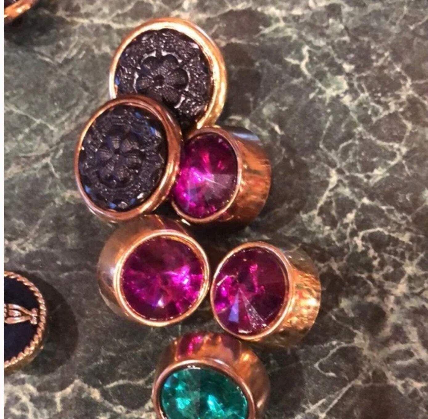 Lot of 200 Rare Vintage Metal Rhinestone,Faux peal , Celluloid Buttons, Pretty Designs ,Consists of several sets , as well as many unique Buttons, equaling over 200 in total.