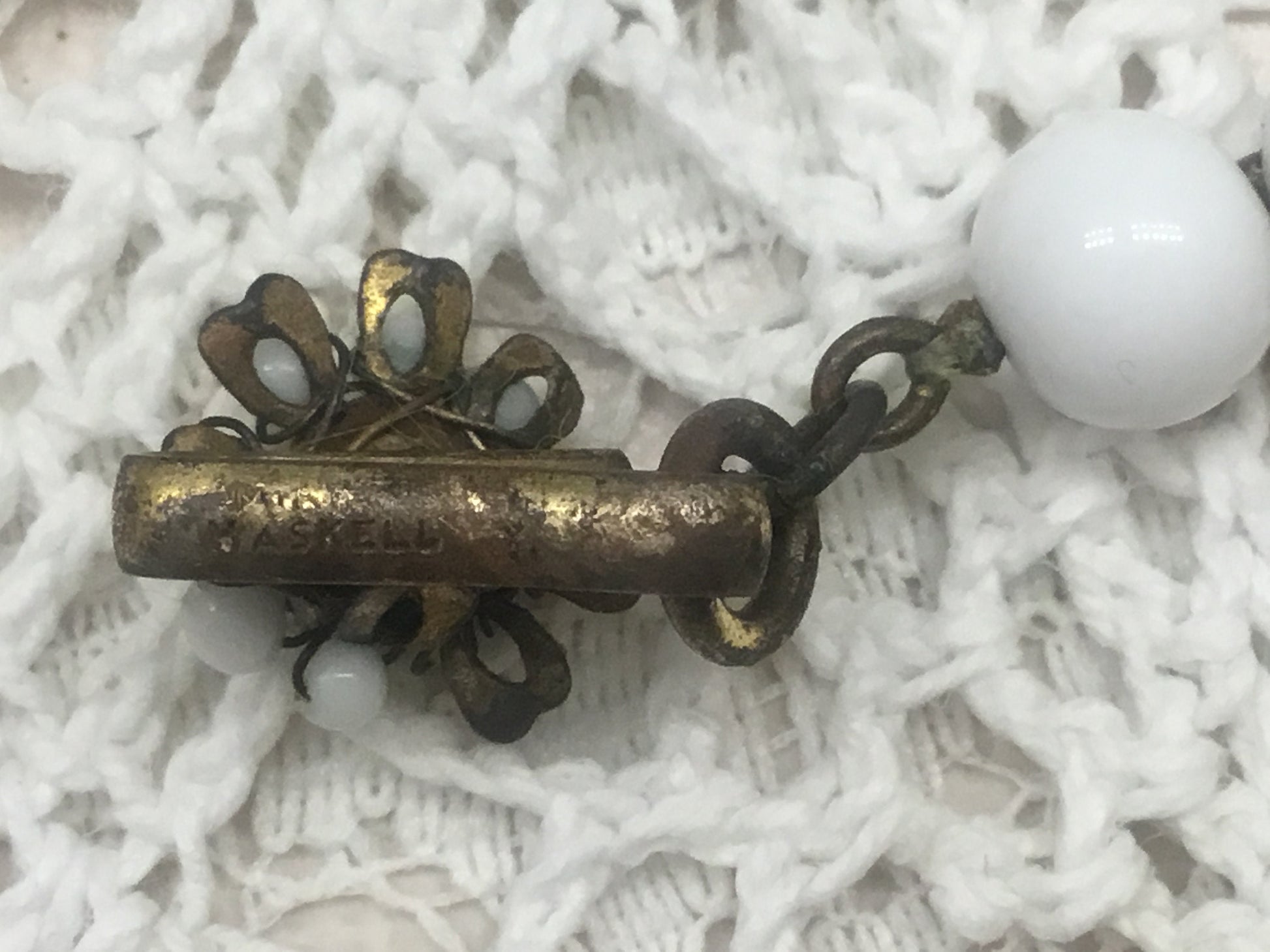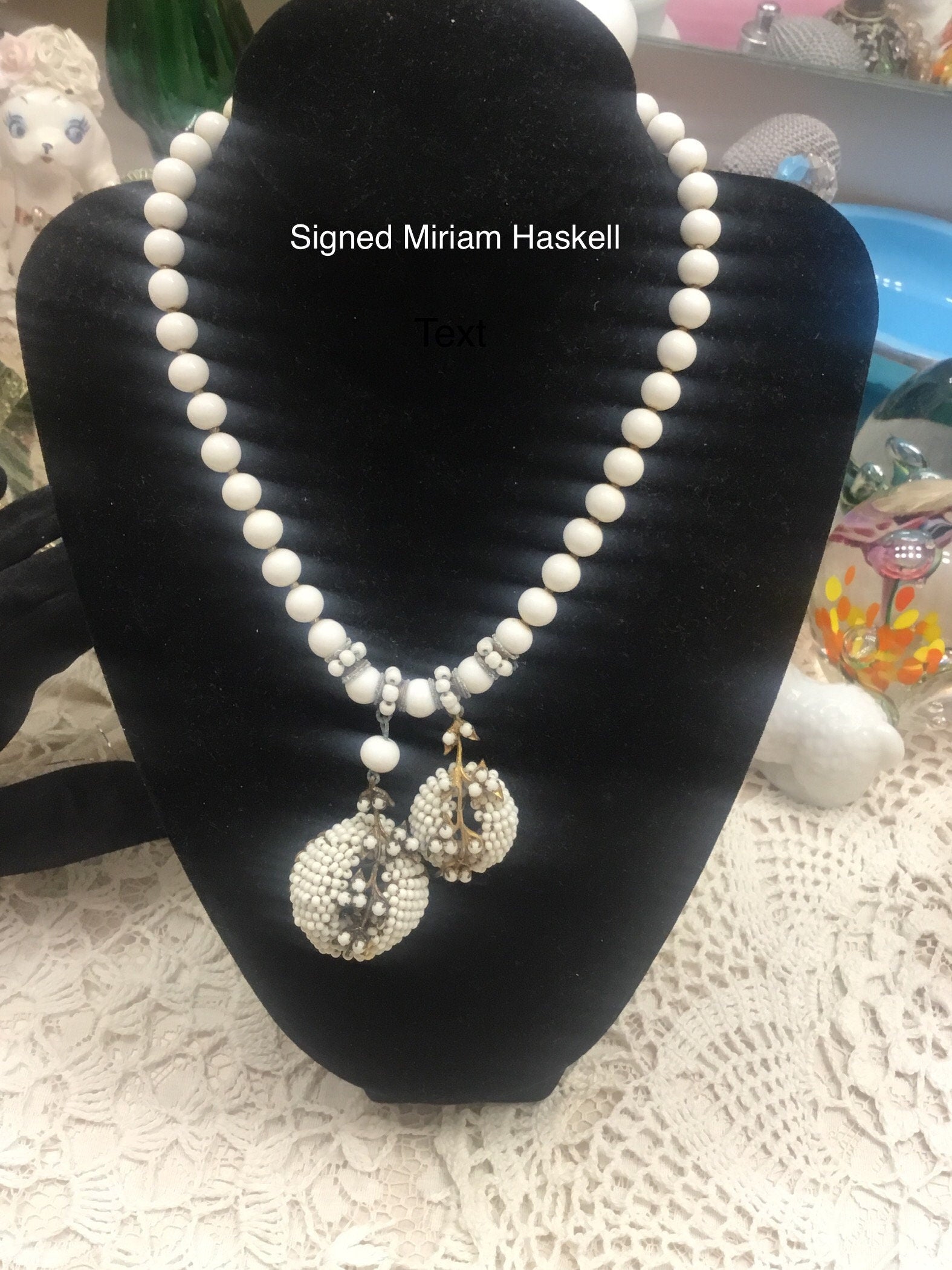 Exquisite high quality manufacture and design,Rare. We try our best to provide quality jewelry at affordable prices. It is valued very highly by collectors because it is rare and beautiful. Pls see the last image, Miriam Haskell Elaborate Milk Glass Bell Flower Necklace is listed at
