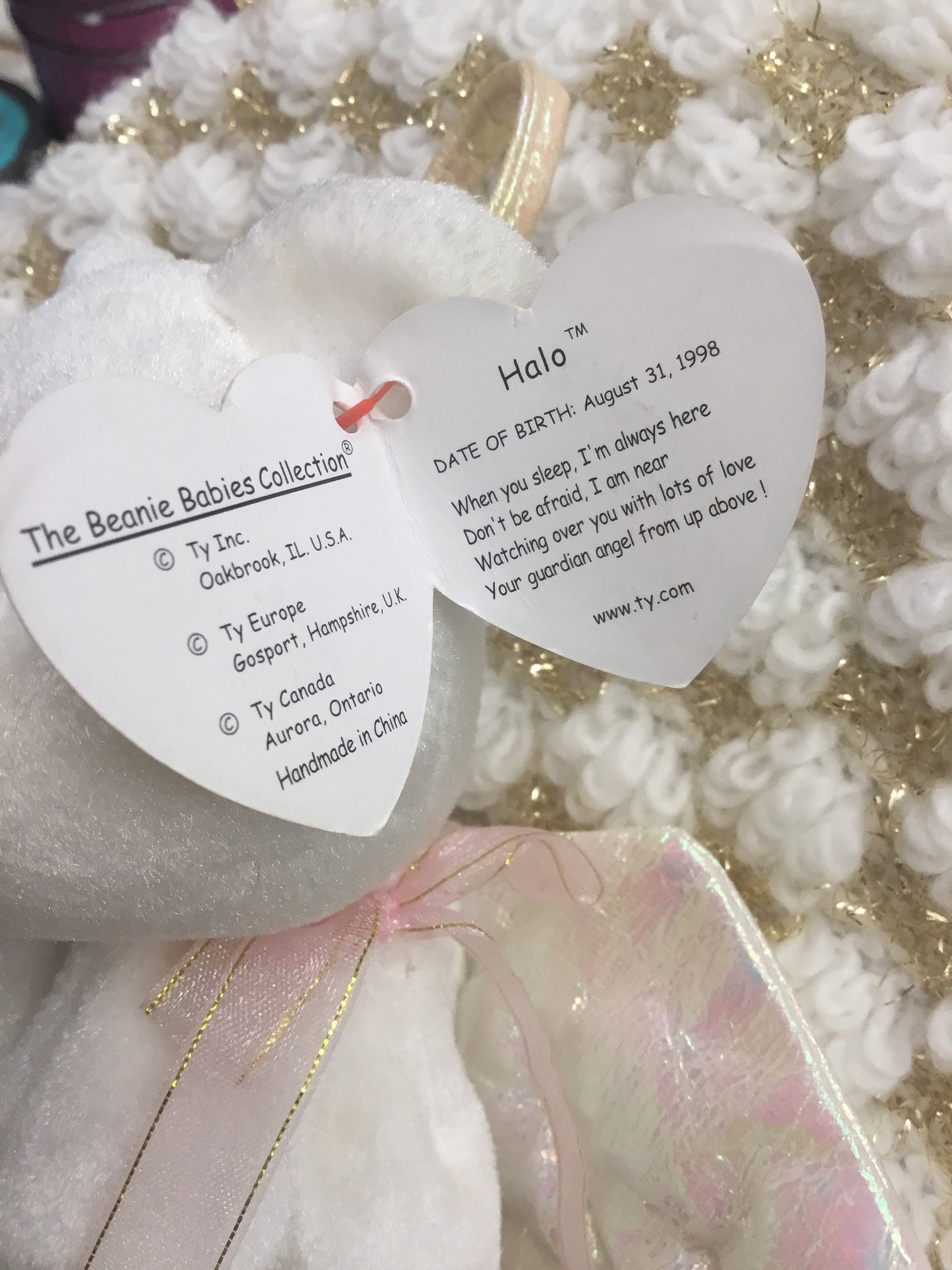 Rare Halo Angel Bear ,Ty Beanie Baby 1998 With Tags