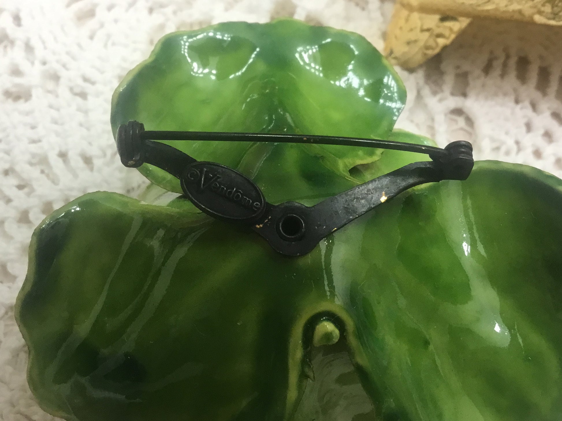 Signed Vendome Large painted enamel and Paste Flower brooch ,Earrings Set Suite,1960s