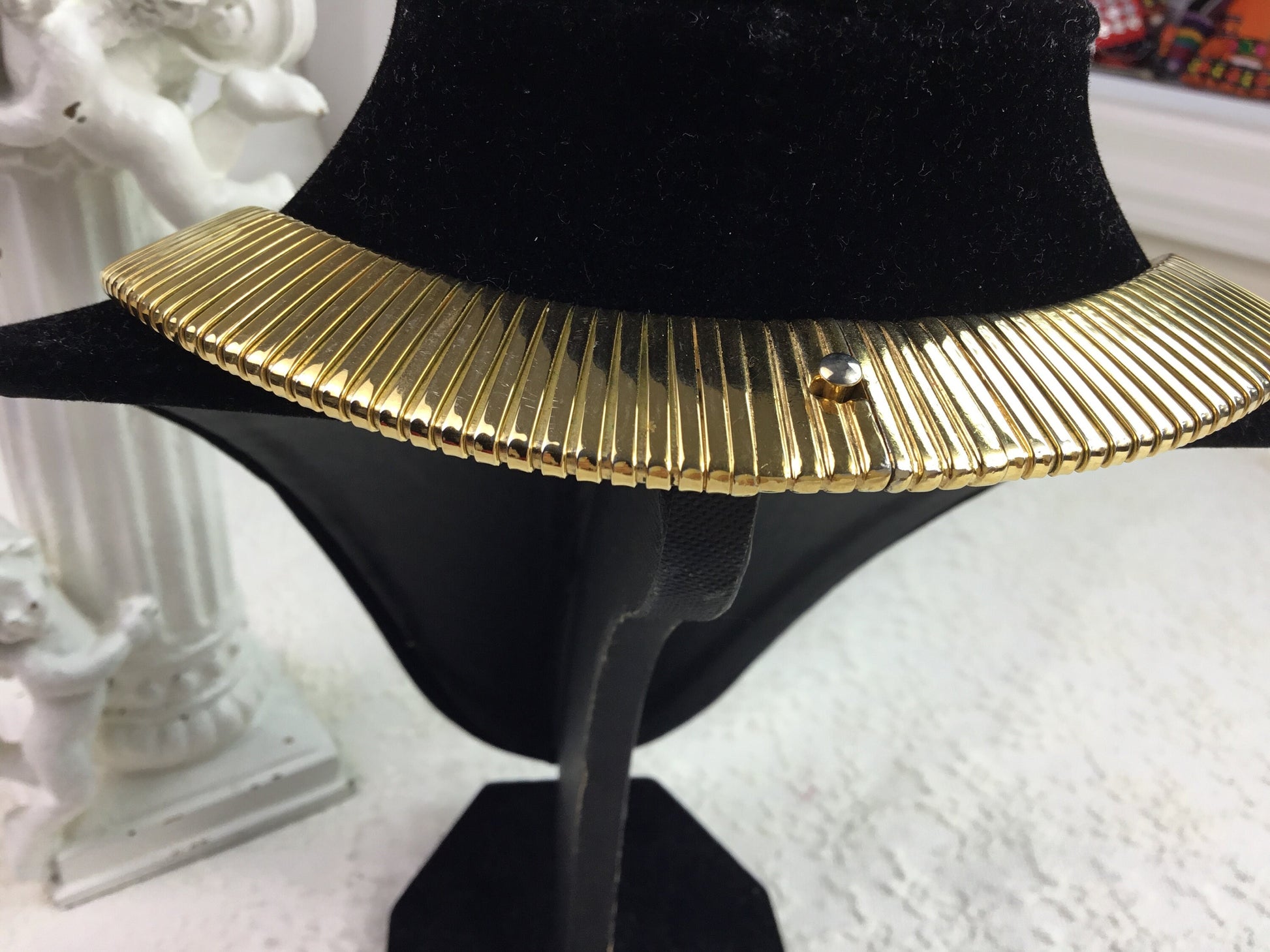 Stunning Ciner Pink swarovski Crystal Necklace 1980s, Classic Ciner Gold Necklace, Wide Gold Choker,embellished in the center