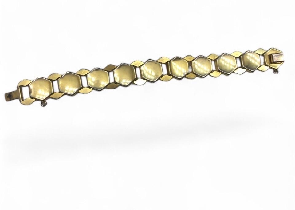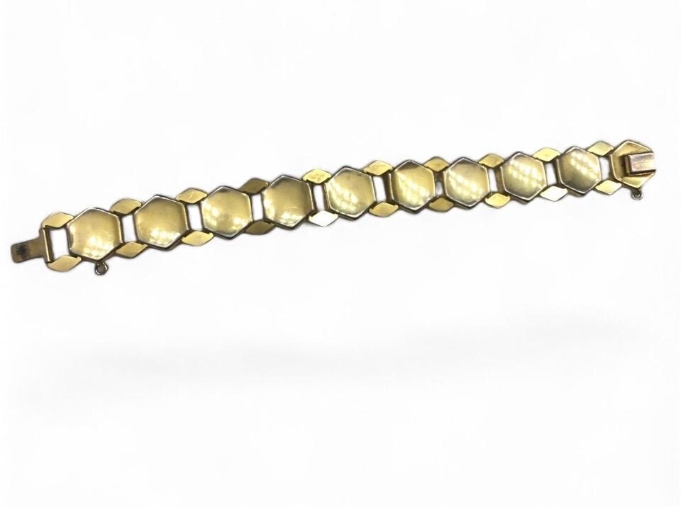 The bracelet is 7”long on the inside of the bracelet when closed and is 1" wide. Vintage Damascene Brooch, Measures 1 1/2”this clasp was only use from 1850 to 1910 very old kept very good care of. Damascening is the art of inlaying different metals into one another-typically, gold or silver into a darkly oxidized steel background-to produce intricate patterns similar to niello. The English term comes from a perceived resemblance to the rich tapestry patterns of damask silk.