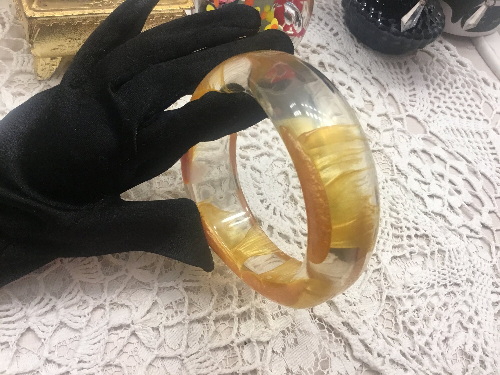 Our Grace Vintage Clear and Gold Acrylic bangle