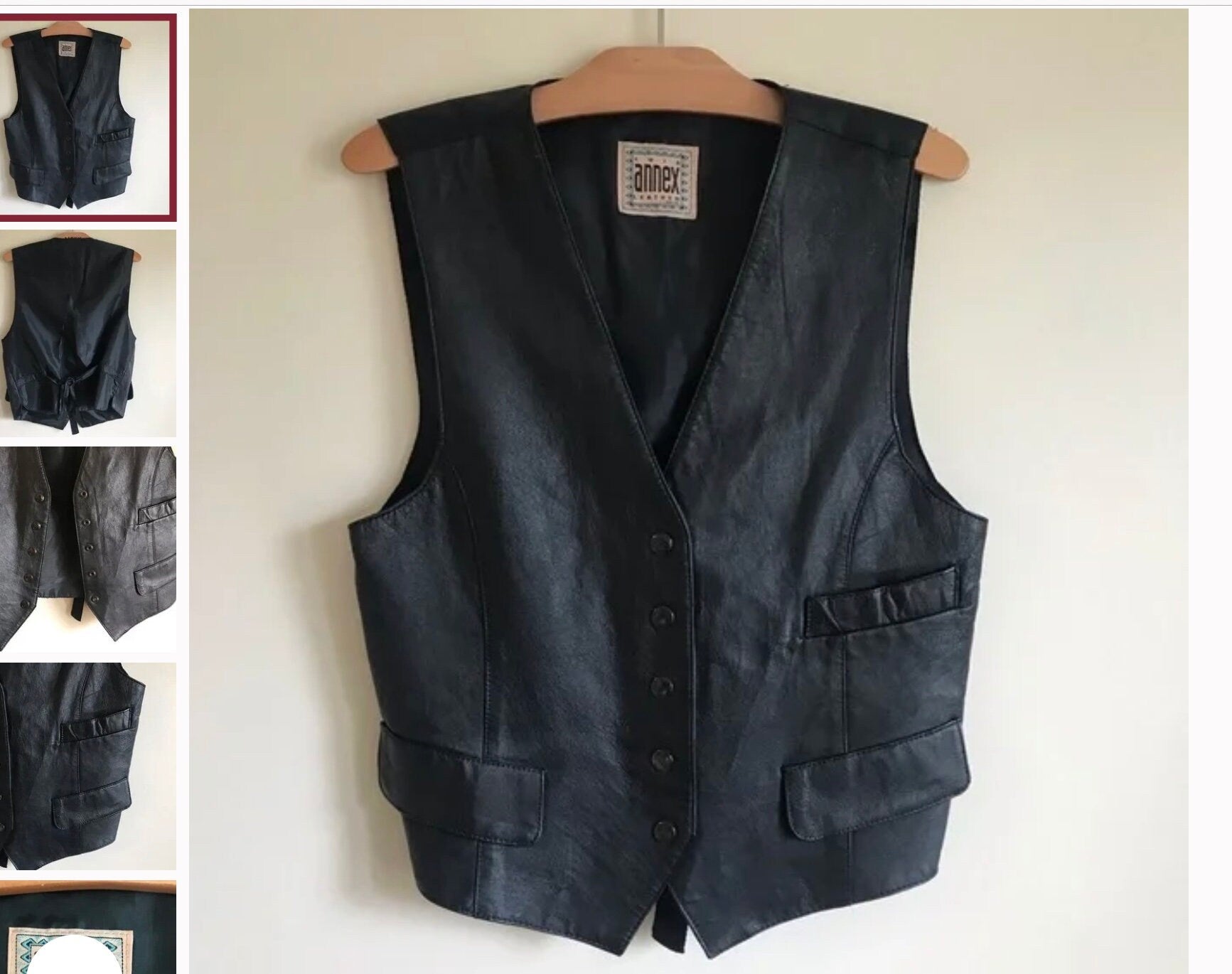 Vintage~Men's~Genuine Leather~Black~VEST/Vintage Leather Biker Vest Cuir Annex